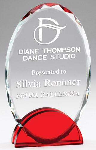 Elegant Double Arc Faceted Oval Ruby Glass Award