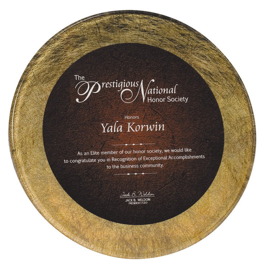 Sienna and Gold Artistic Round Acrylic Plaque Award