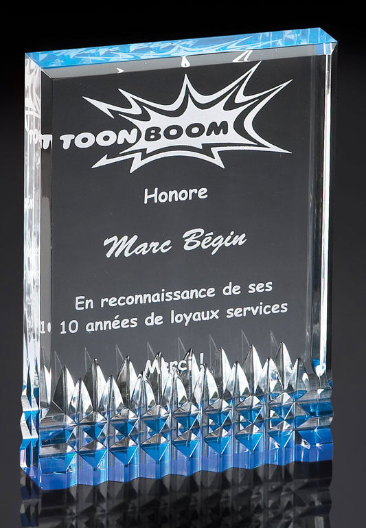 Blue Flame Etched Edge Crystal Award