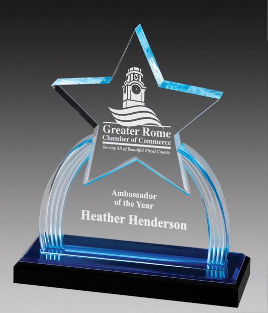 Blue Lasered Star Acrylic Award