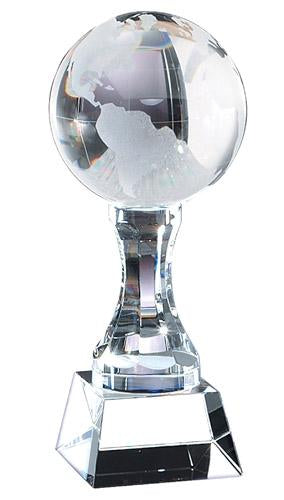 Clear Crystal World Globe On Sculpted Prism Pedestal